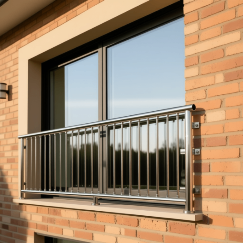 Стандартная высота наших ограждений для окон из нержавеющей стали составляет 1000 миллиметров. Такой размер обеспечивает оптимальный баланс между защитой и обзором из окна. Диаметр основных вертикальных прутьев обычно равен 16 миллиметрам для повышенной прочности. Мы предлагаем различные варианты заполнения — от классических прутьев до декоративных решеток.