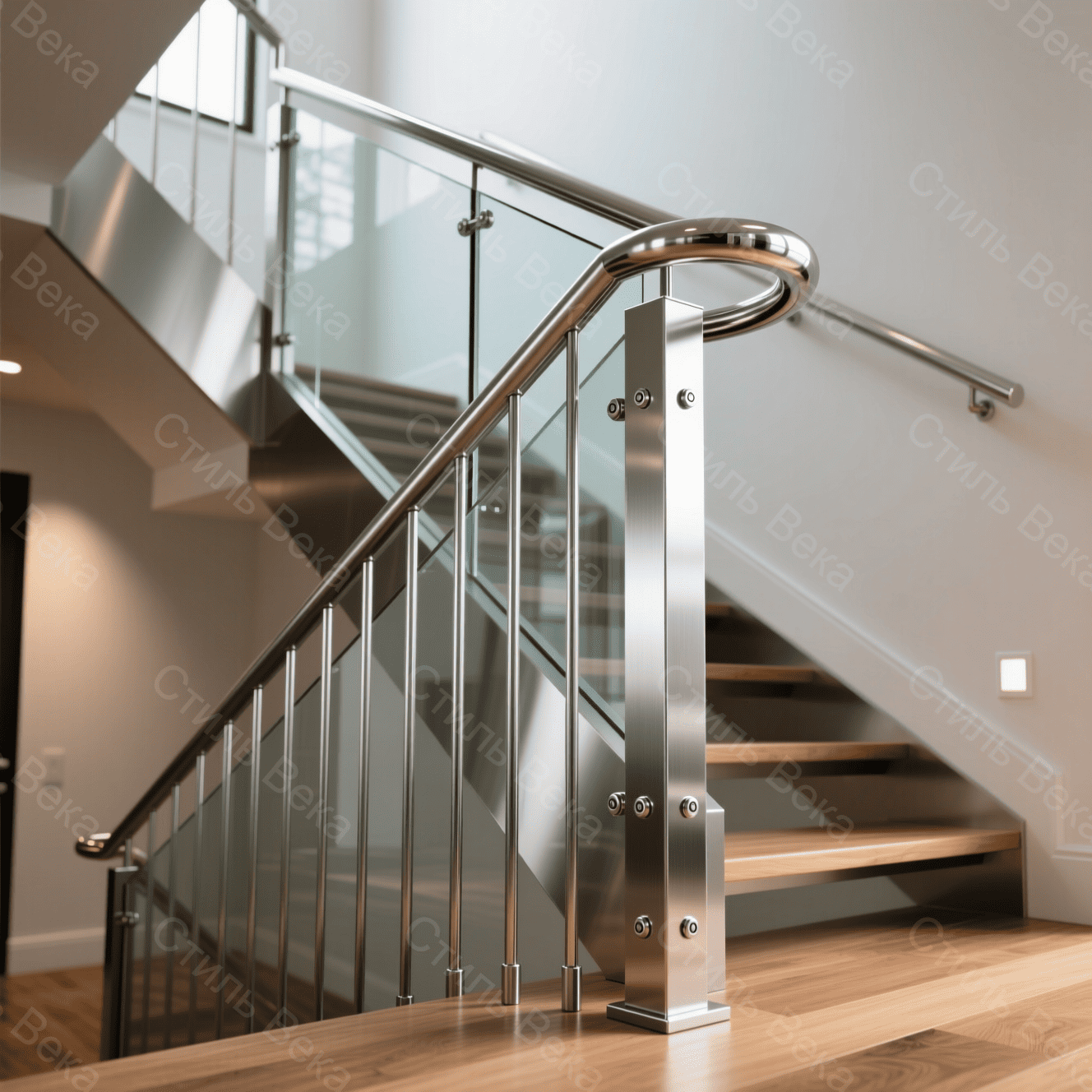 - Поручень — круглый AISI 304, Ø42 мм или Ø45 мм, длина по проекту.