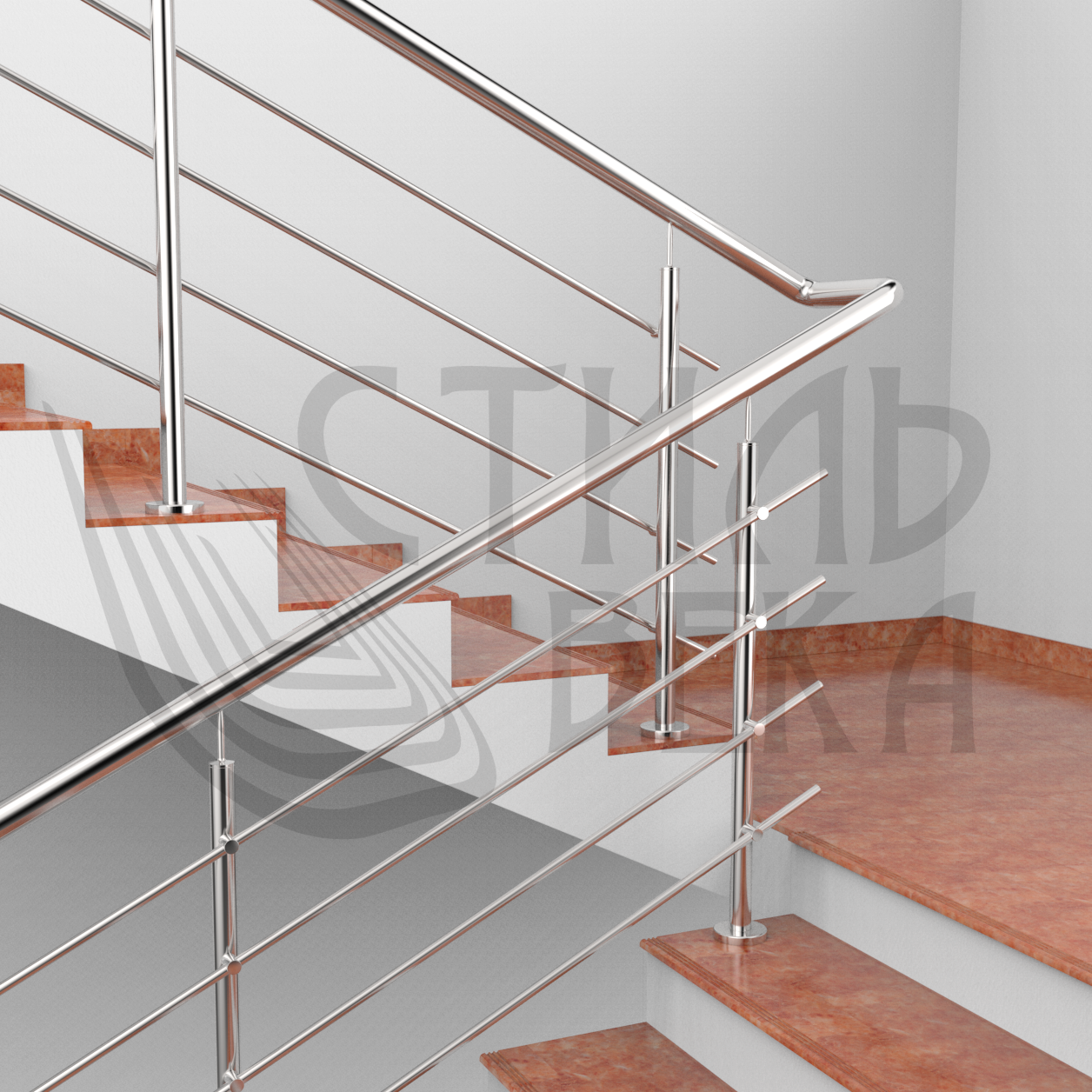 Производство и установка перил с четырьмя ригелями из нержавеющей стали.