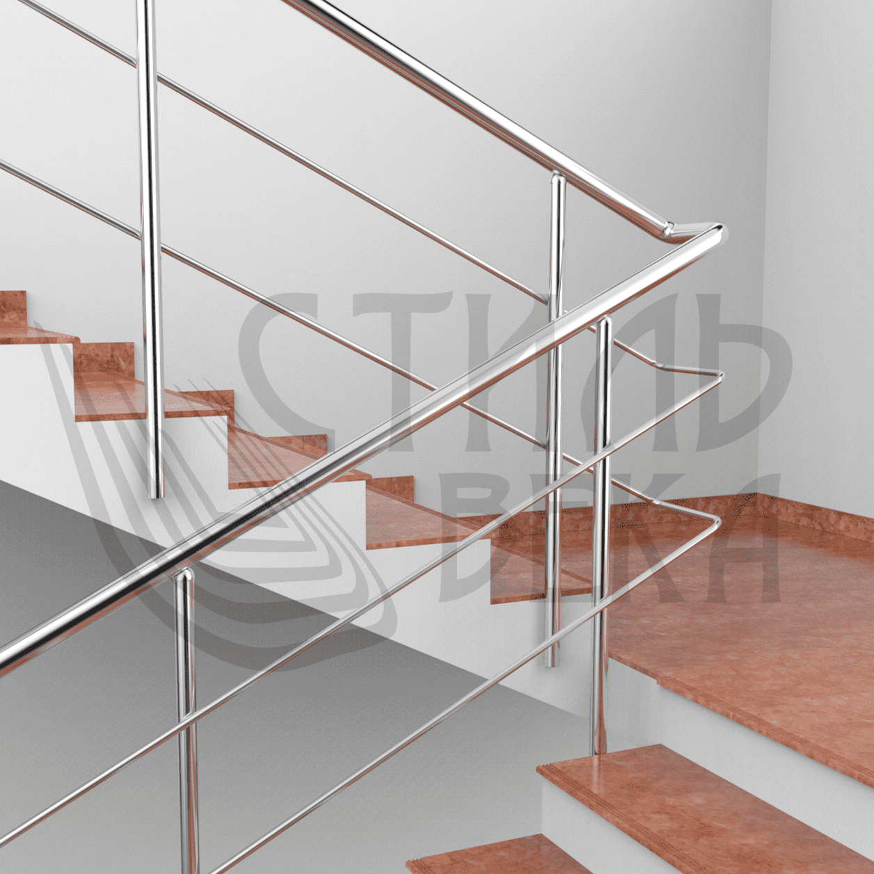 Элегантный и современный дизайн. Лаконичная конструкция с двумя горизонтальными ригелями выглядит стильно и минималистично. Вы можете выбрать подходящую отделку (полированную, матовую, сатинированную), чтобы перила и ограждения из нержавеющей стали с двумя ригелями идеально дополнили интерьер вашего подъезда, магазина или офиса.