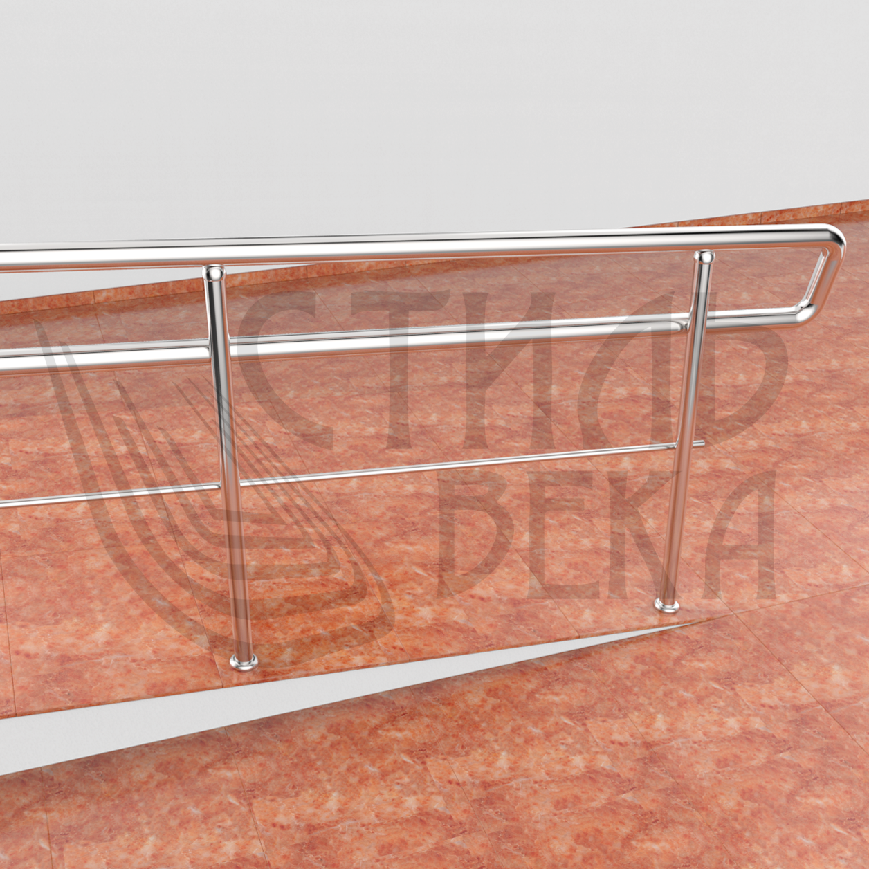 - Конструкция состоит из двух горизонтальных поручней диаметром 42 мм и одного среднего ригеля Ø38 мм.