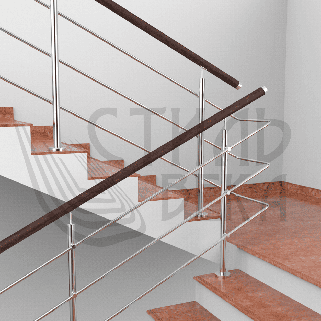 Перила с тремя ригелями и поручнем из древесины изготавливаются и устанавливаются компанией «Стиль Века», специализирующейся на производстве и монтаже металлических ограждений из нержавеющей стали. Такая конструкция сочетает прочность стального каркаса и естественную теплоту древесины, что особенно востребовано в жилых и коммерческих интерьерах Москвы.